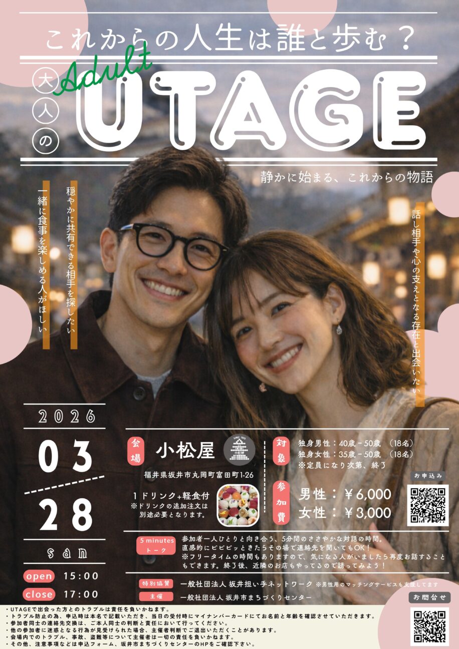 大人の出会い!求めてませんか?ついに『大人のUTAGE』が坂井市で開催決定【丸岡】