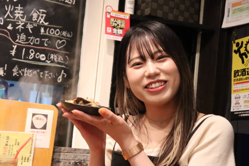 湯けむり横丁で選んだ店は、ふーちゃんが普段バイトに入っている『牛ホルモン焼 西やん』普段から慣れ親しんでいるお店で店主はふーちゃんのお父さんとの事。