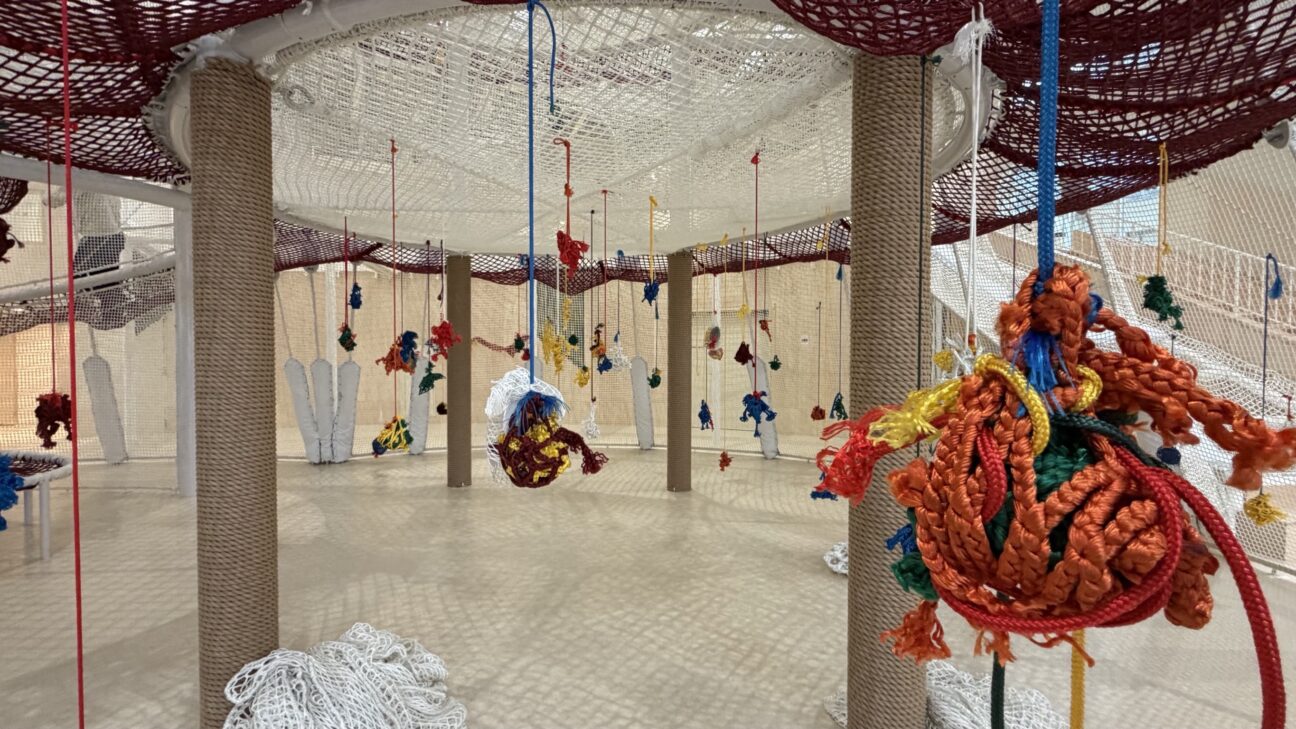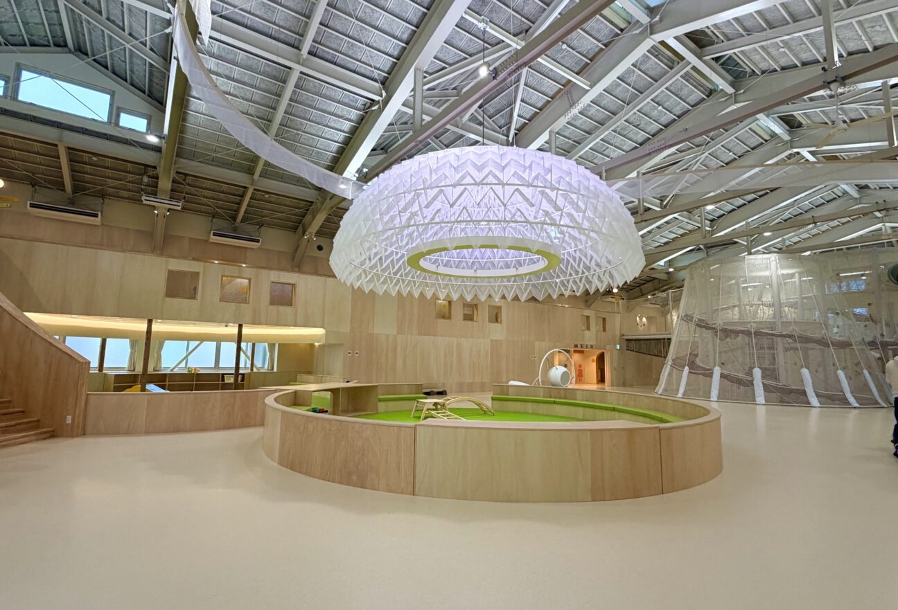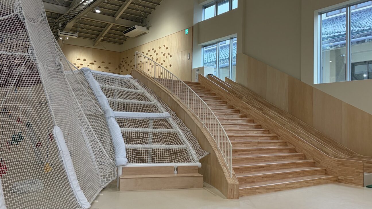 2階以上に登れない小さな子も、ネットから垂れ下がる可愛い装飾(地元の職人さんのご家族を招待してワークショップで作ったもの!運営さんの想いに感動!)で楽しく遊べるよう工夫されています。