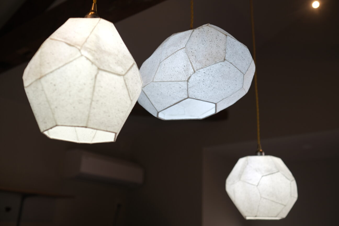 笏谷石が練り込まれた和紙のライト